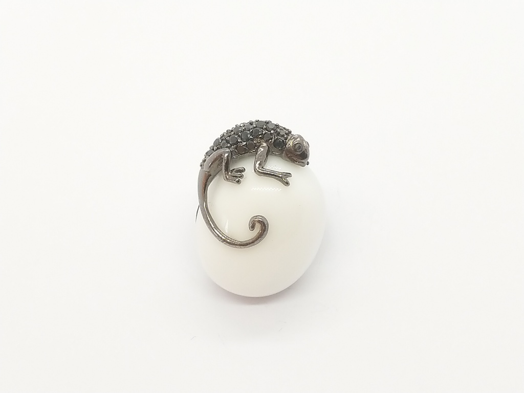 Geschwärzter Silberring mit Kameleon
