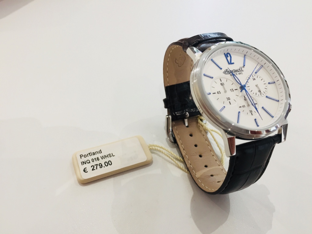 - Zifferblatt: Weiß mit gebläuten Zeigern